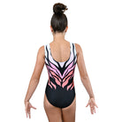 Unleash your wild side with Zenya — where fierce meets finesse. This striking leotard features a sublimated design that flows from a bold black base into a cascade of flowing stripes in radiant pink, coral, and white.
